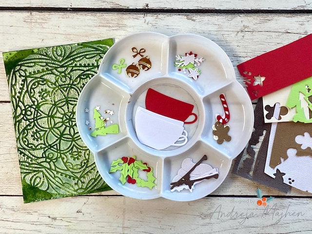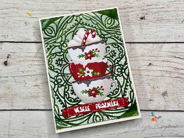 Pozdravljeni v sobotno jutro in novem izzivu pri 52 CCT . Tokrat želimo na voščilnicah skodelice. Na moji so tri, okrašene s mini božičnimi zvezdami.