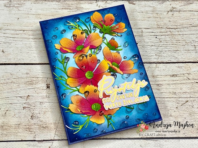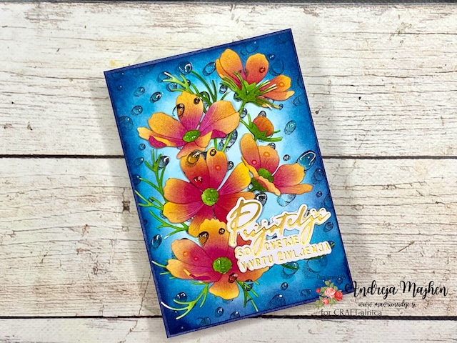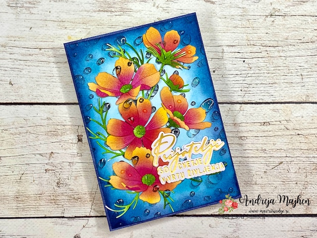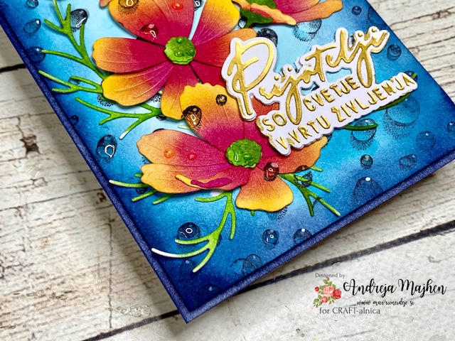 Izdelala sem vocvetlično voščilnico z dežnimi kapljicami.