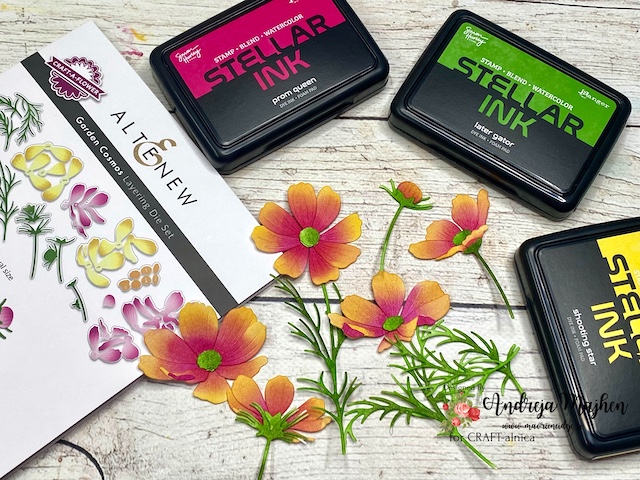 Za barvanje cvetja in motivov sem uporabila Stellar ink blazinice.