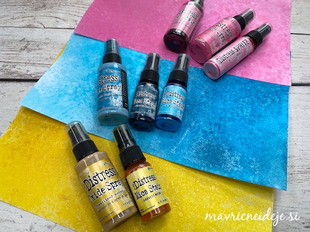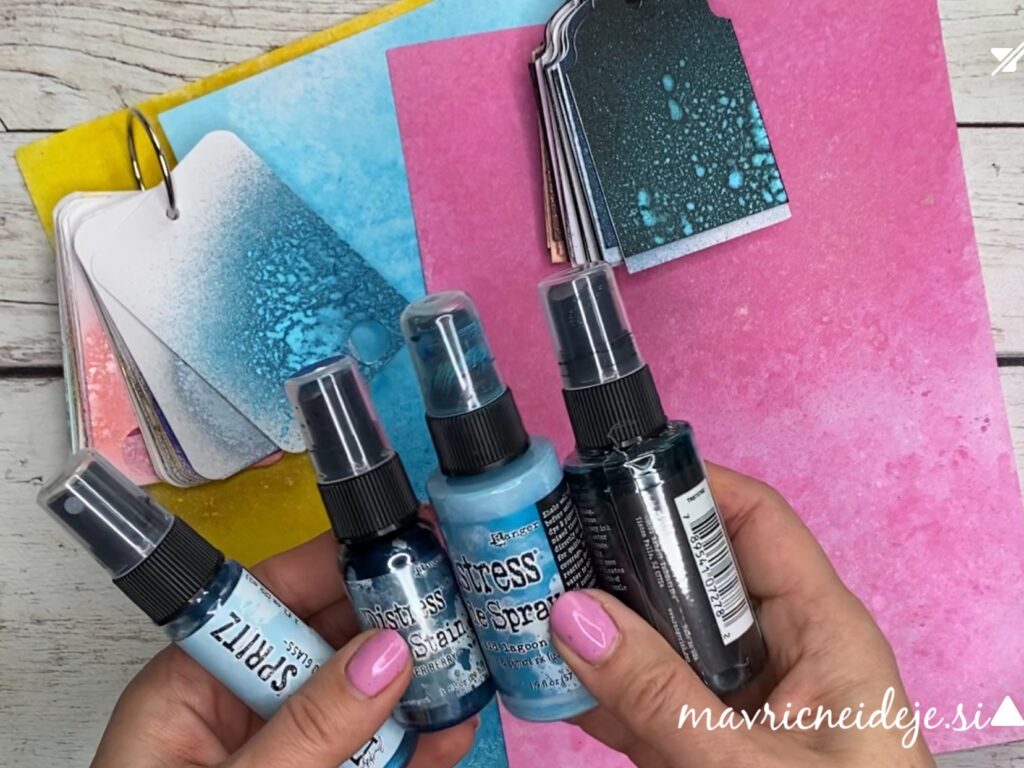 Z različnimi spreji sem izdelala barvne papirje, ki sem jih nato uporabila za izdelavo voščilnice.