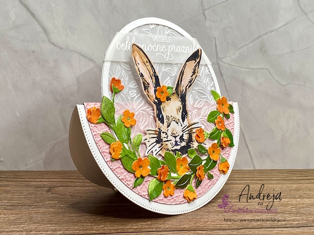 Pozdravljeni v novem izzivu v FB skupini PAPIRČKARICE. Tokratni izziv je: VELIKA NOČ. Izdelala sem zibajočo voščilnico z zajcem in čvetočo vejico.