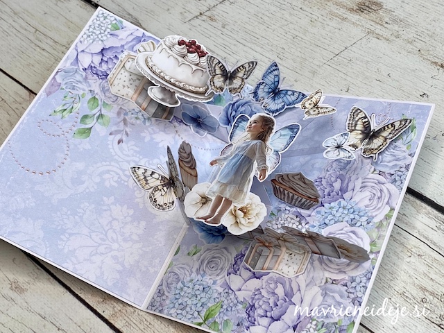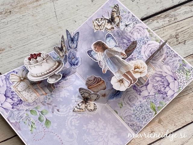 Pop-up voščilnice lahko izdelamo z veliko različnimi mehanizmi. Tokratni mehanizem je lahko levi ali desni in omogoča veliko dodatnih elementov zato je primeren za bogate voščilnice.