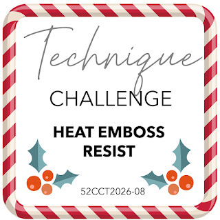 Pozdravljeni v sobotno jutro in novem izzivu pri 52 CCT . Tokrat je na vrsti tehnični izziv – heat emboss resist. Gre za tehniko pri kateri odtis motiva vroče embosiramo in nato preko embosiranja nanašamo barvo.
