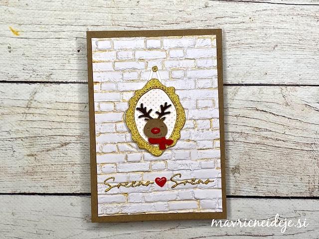 Okvirček, napis in jelenčka sem izrezala iz barvnih papirjev in jih sestavila s tekočim lepilom.