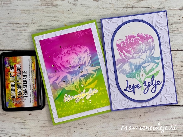 - Štampiljko namazano z Alcohol Lift-Ink, odtisneš na obarvano površino.