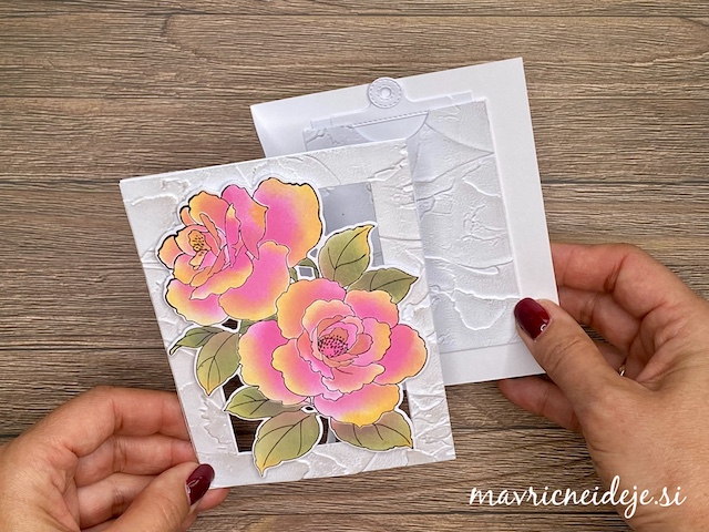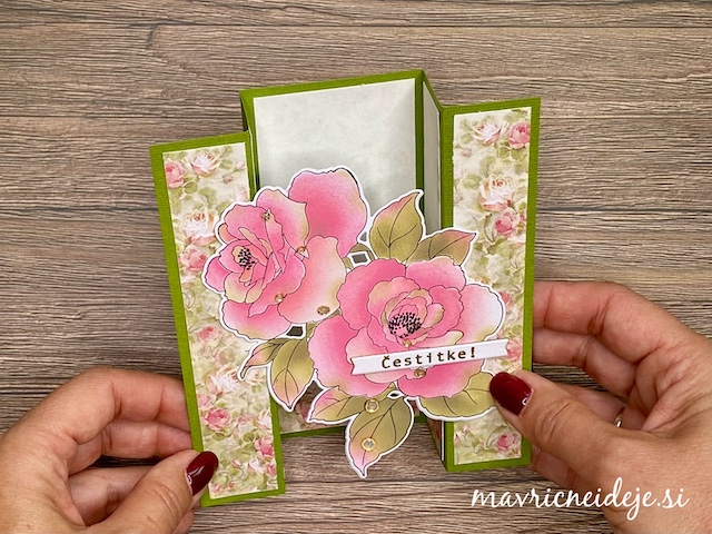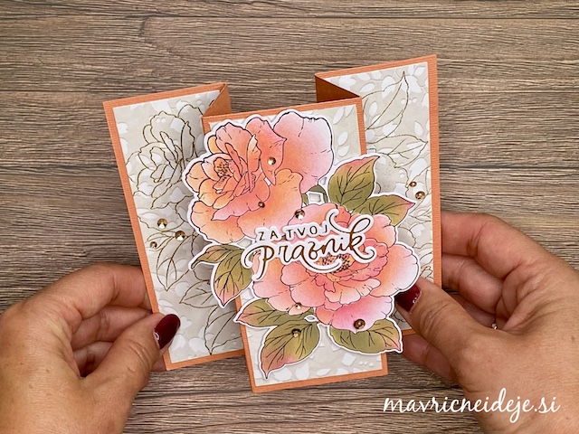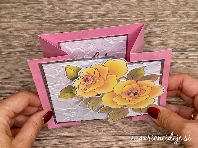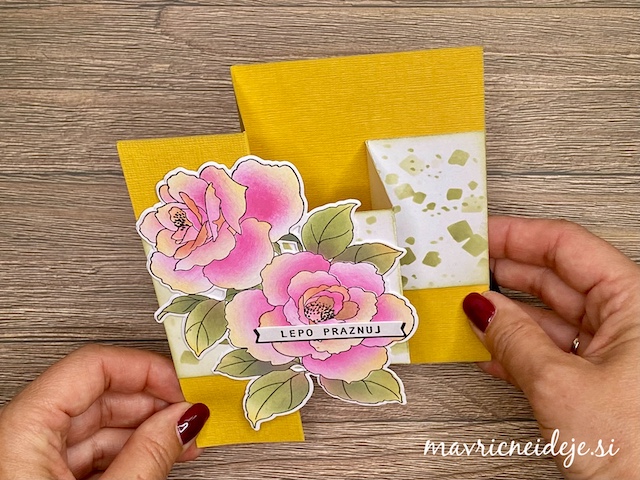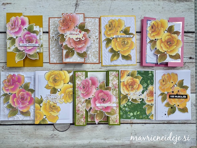 Z izdelanimi ali izrezanimi večjimi motivi cvetja lahko hitro izdelamo zelo atraktivne voščilnice. Kombiniramo jih lahko s teksturnimi srajčkami, potiskanimi papirji ali pa jih namestimo na zabavne prepogibe.