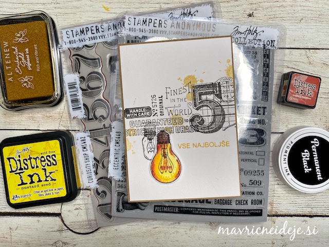 - štampiljke s črkami in številkami Tim Holtz
